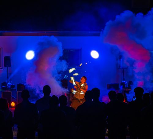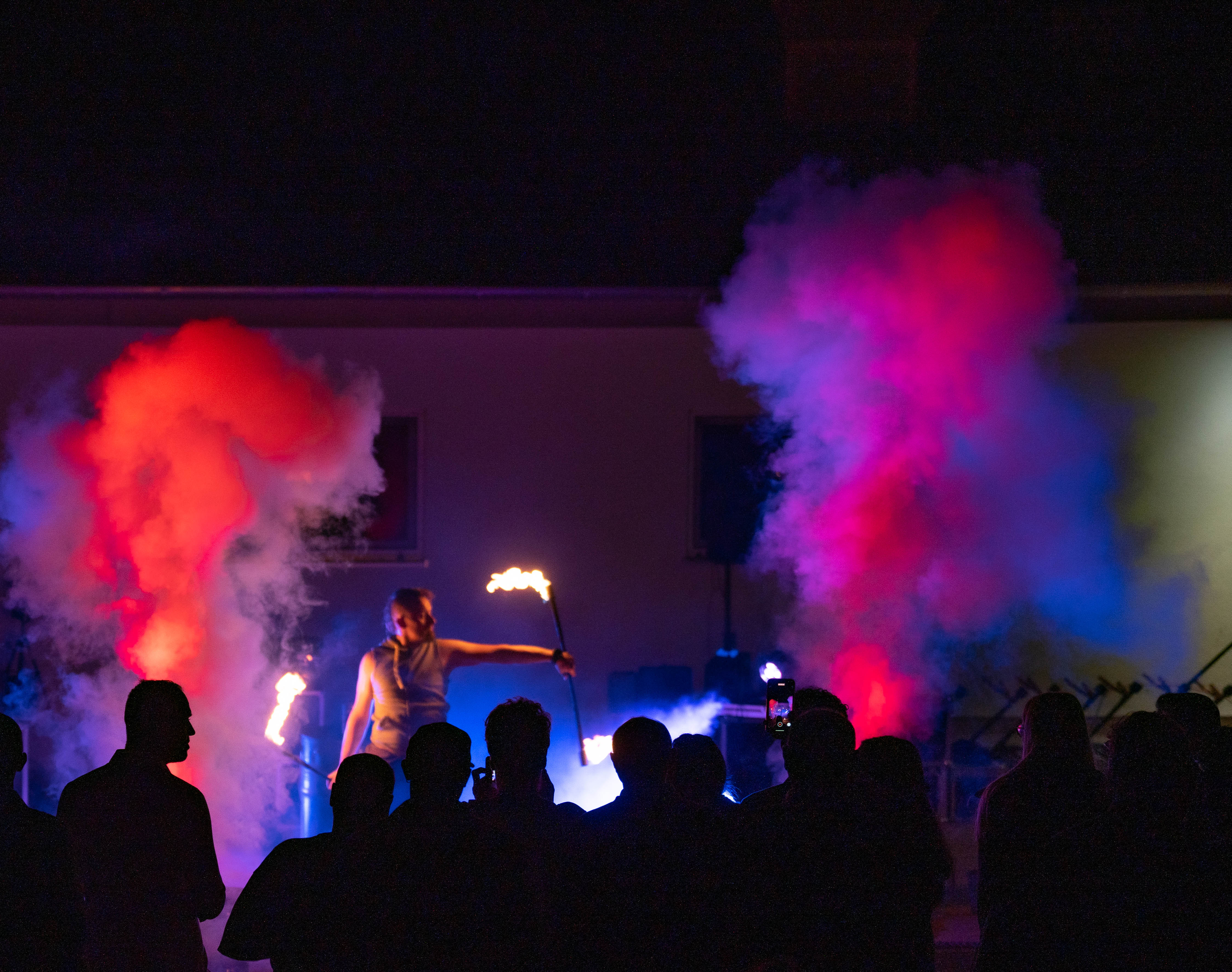 Für das Publikum wurde Industrial Fire zum emotionalen Höhepunkt des Abends. Die Gäste ließen sich von der Kombination aus Energie, Präzision und Leidenschaft mitreißen. Applaus, Begeisterung und leuchtende Gesichter spiegelten die Wirkung des Moments wider. Die Show schuf nicht nur Staunen, sondern auch Verbindung – genau das, was eine erfolgreiche Firmenfeier ausmacht: Teamgeist, gemeinsame Emotionen und bleibende Erinnerungen.