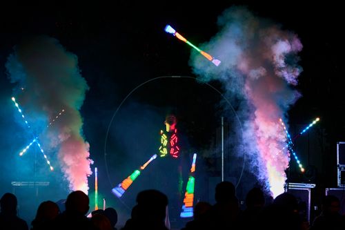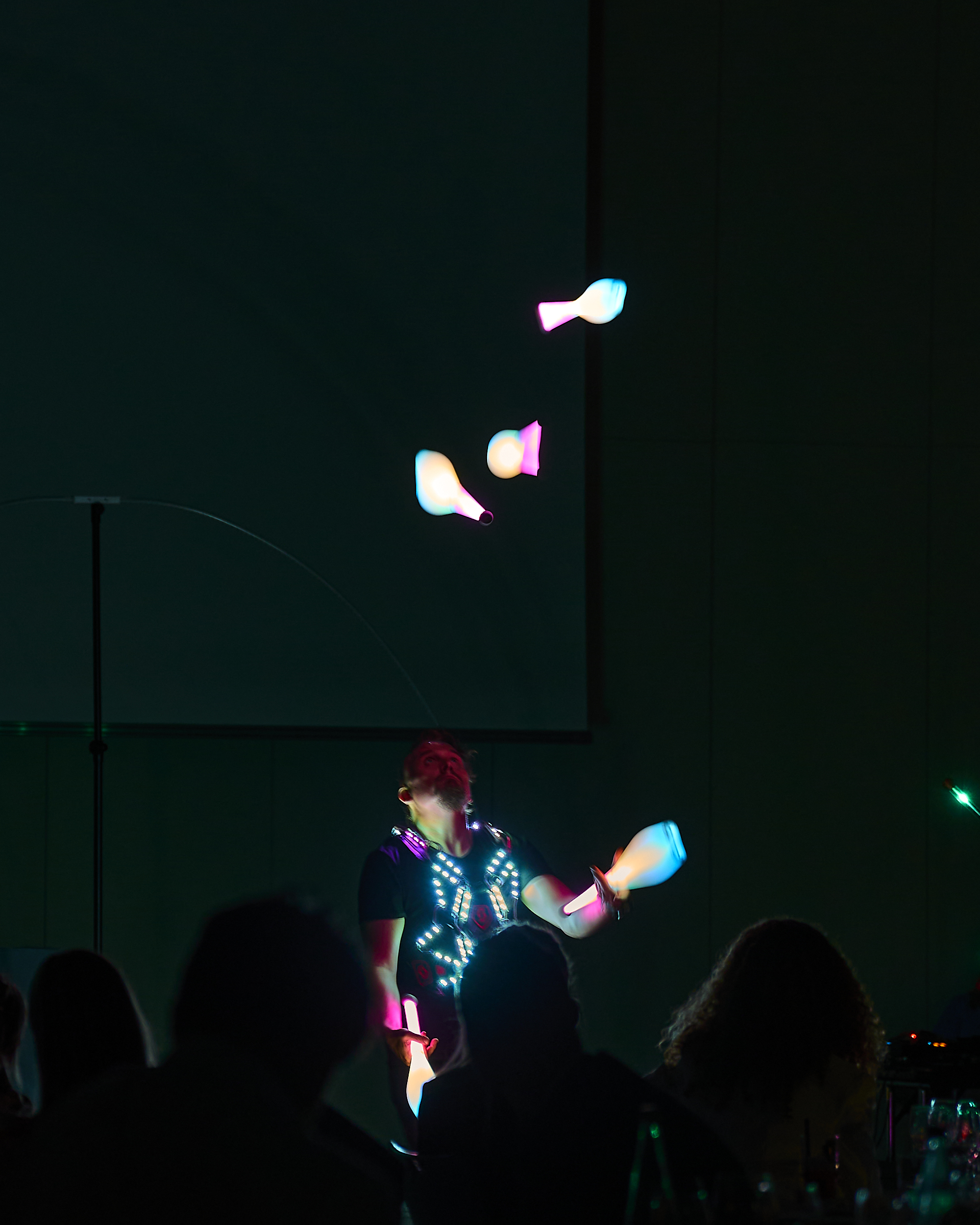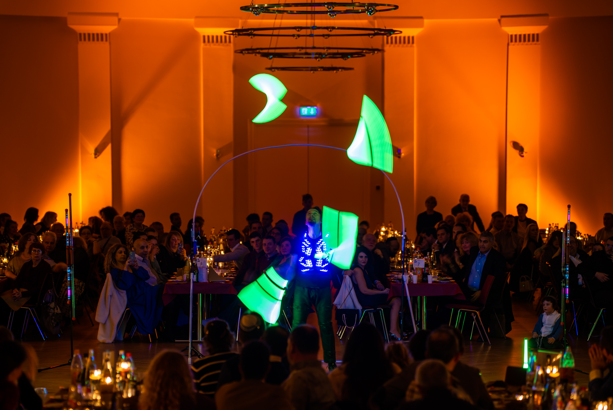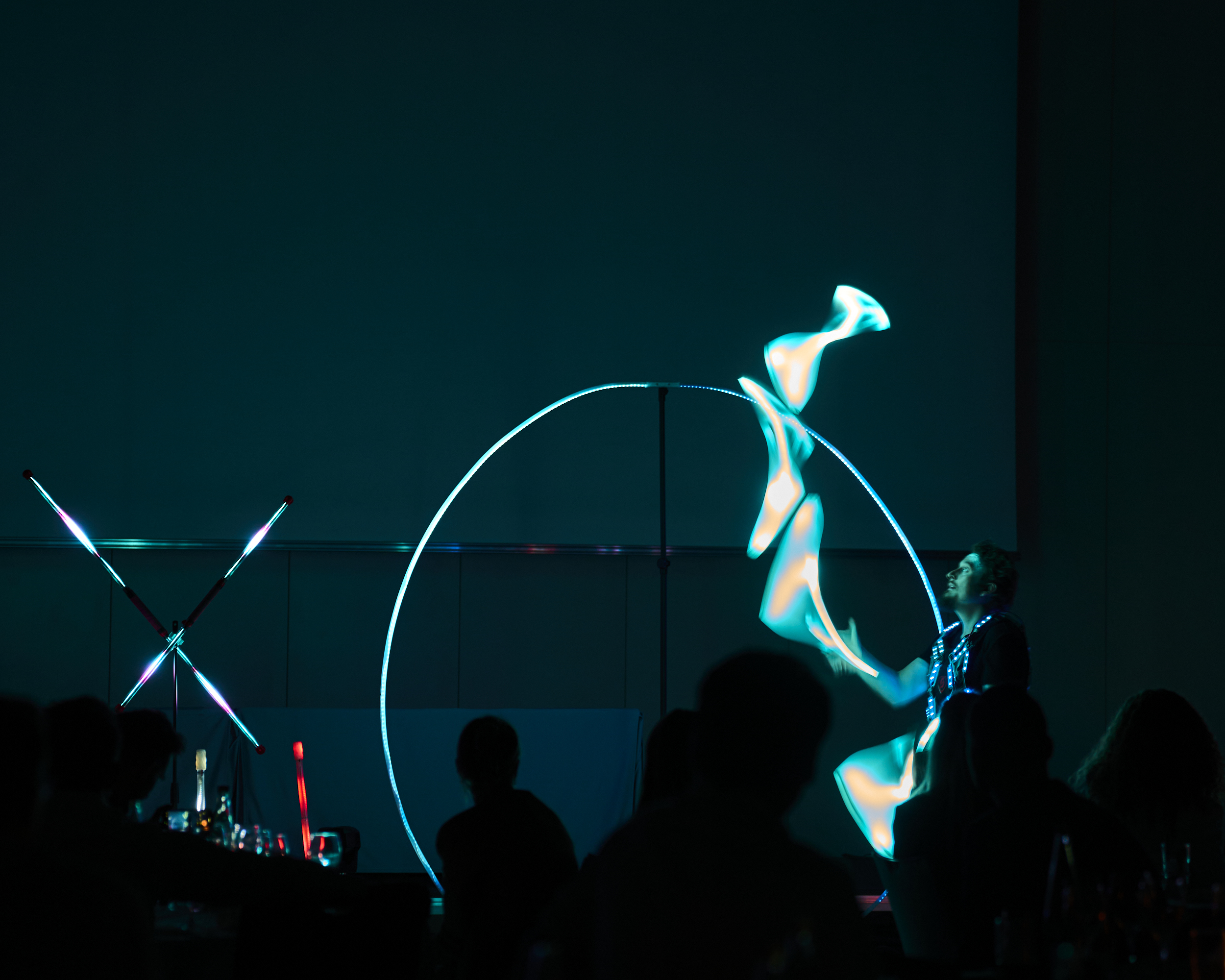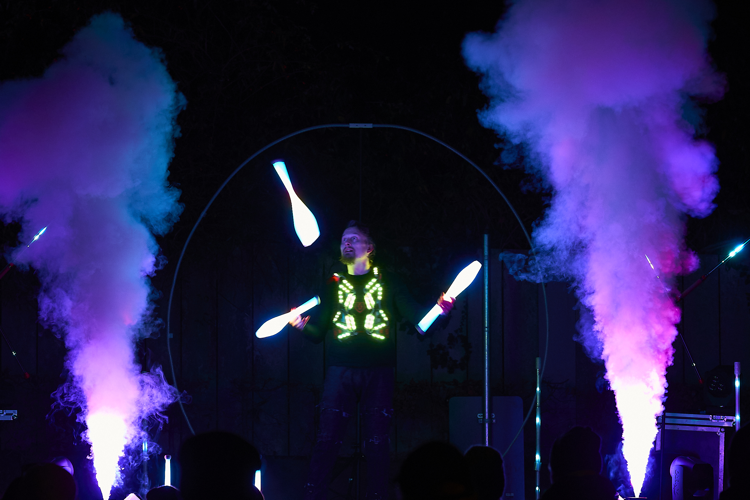 Strahlende Farben, pulsierende Beats und absolute Präzision: In meiner LED-Show Light Up trifft moderne Jonglage auf anspruchsvolle Lichtkunst. Ich jongliere mit leuchtenden Keulen, Pixel-Poi und Stäben – synchron zur Musik, bis zu fünf Requisiten gleichzeitig. Jeder Effekt, jede Farbe, jedes Symbol ist millisekundengenau programmiert. Namen, Logos oder individuelle Botschaften erscheinen als schwebende Lichtbilder in der Luft – einzigartig und unvergesslich.